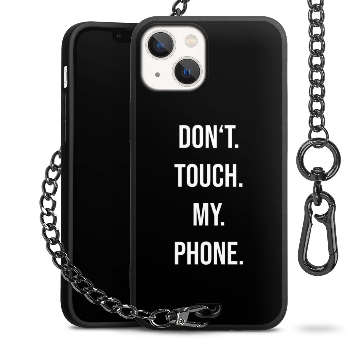 - Mattschwarze Handyhülle mit Metallkette