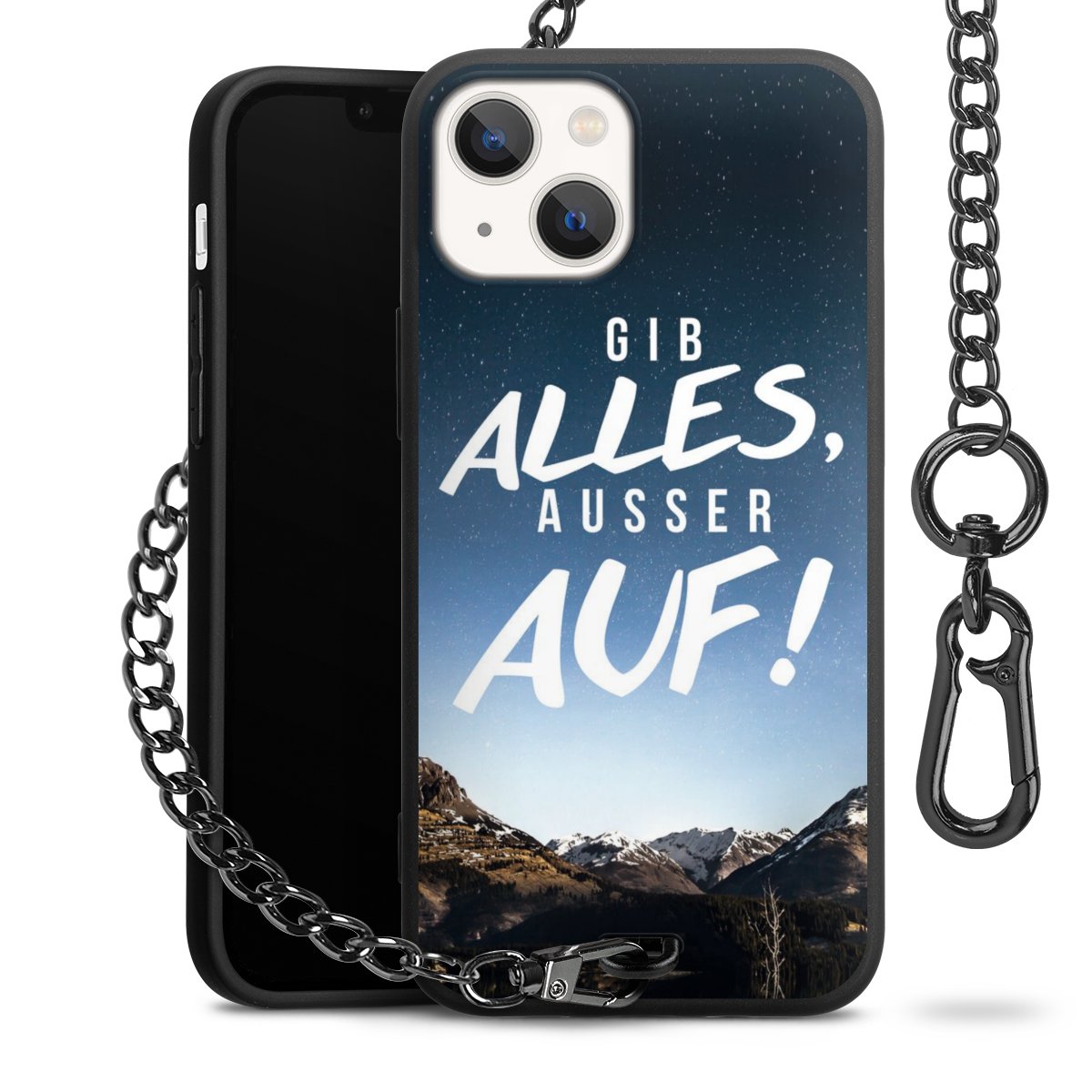 • Mattschwarze Handyhülle mit Metallkette