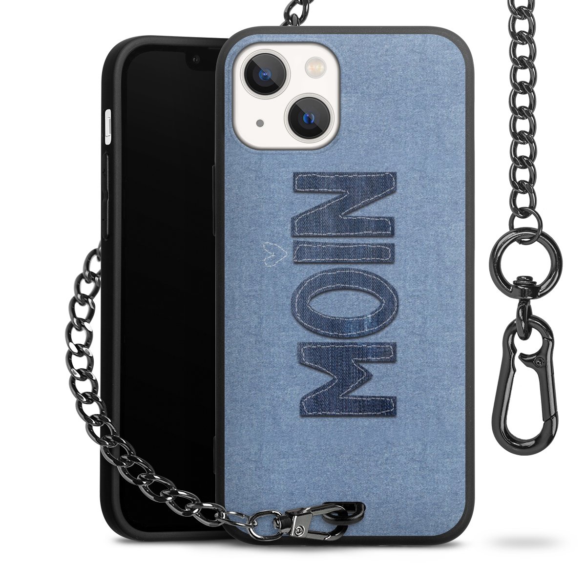 • Mattschwarze Handyhülle mit Metallkette