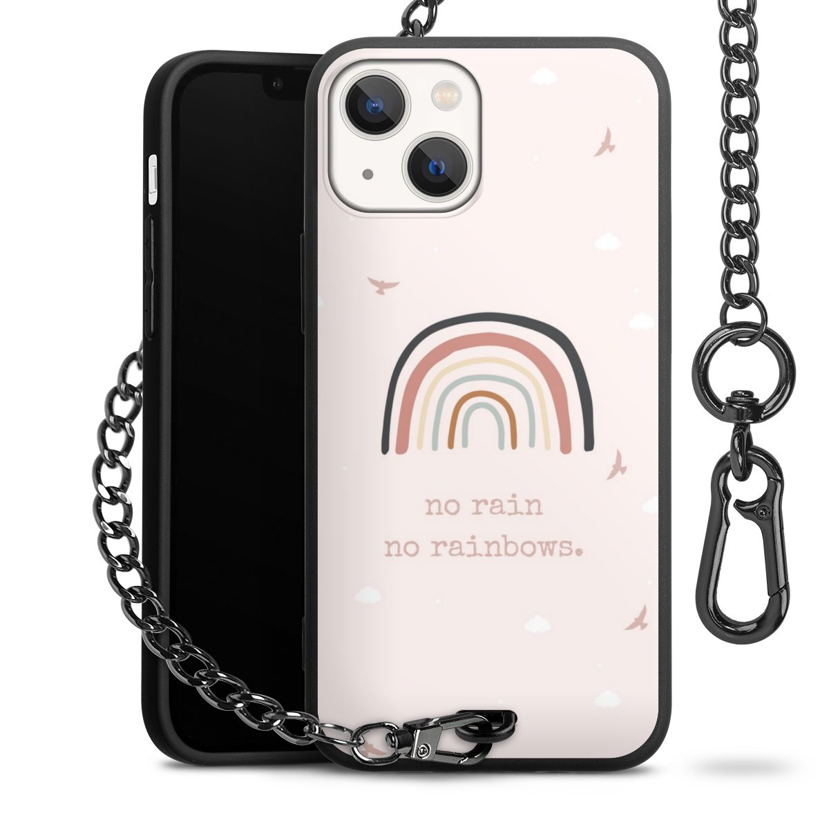 - Mattschwarze Handyhülle mit Metallkette