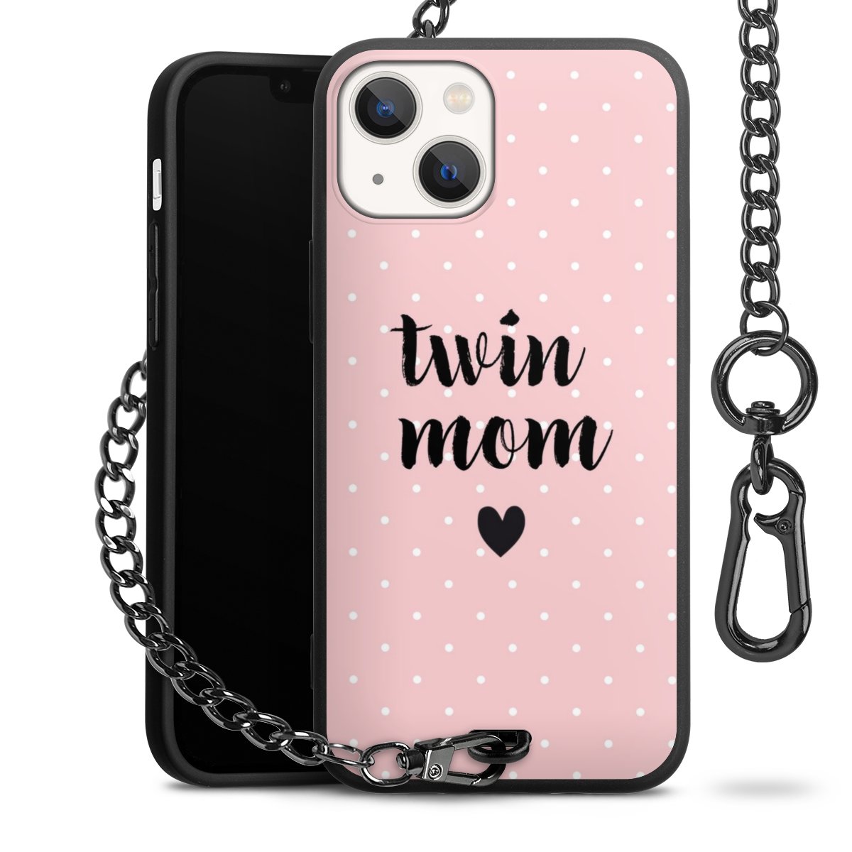 • Mattschwarze Handyhülle mit Metallkette