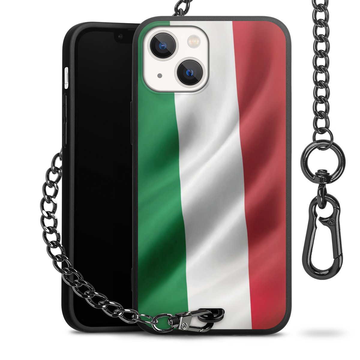 Die mattschwarze Silikon-Handyhülle besteht aus robustem TPU (thermoplastisches Polyurethan). Sie ist flexibel und schützt Dein Smartphone vor Stößen und Kratzern. Die Kette sowie der Karabinerhaken sind aus Metall in Gunmetal-Optik gefertigt. Für dieses Produkt kommen ausschließlich TÜV-geprüfte Materialien zum Einsatz.