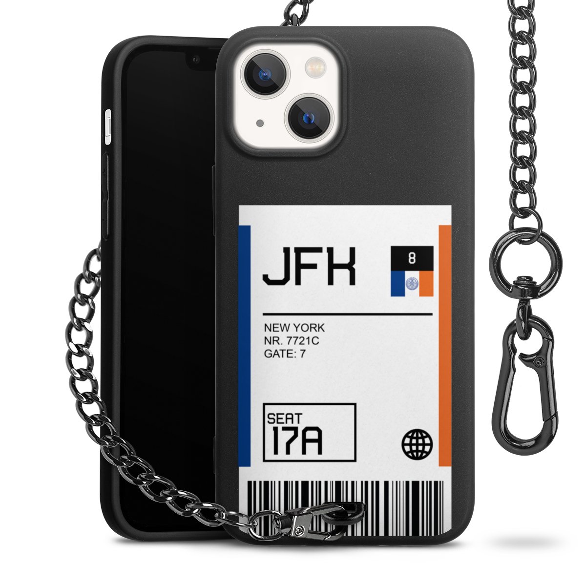- Mattschwarze Handyhülle mit Metallkette