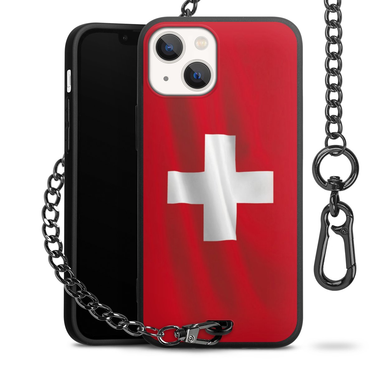 - Mattschwarze Handyhülle mit Metallkette