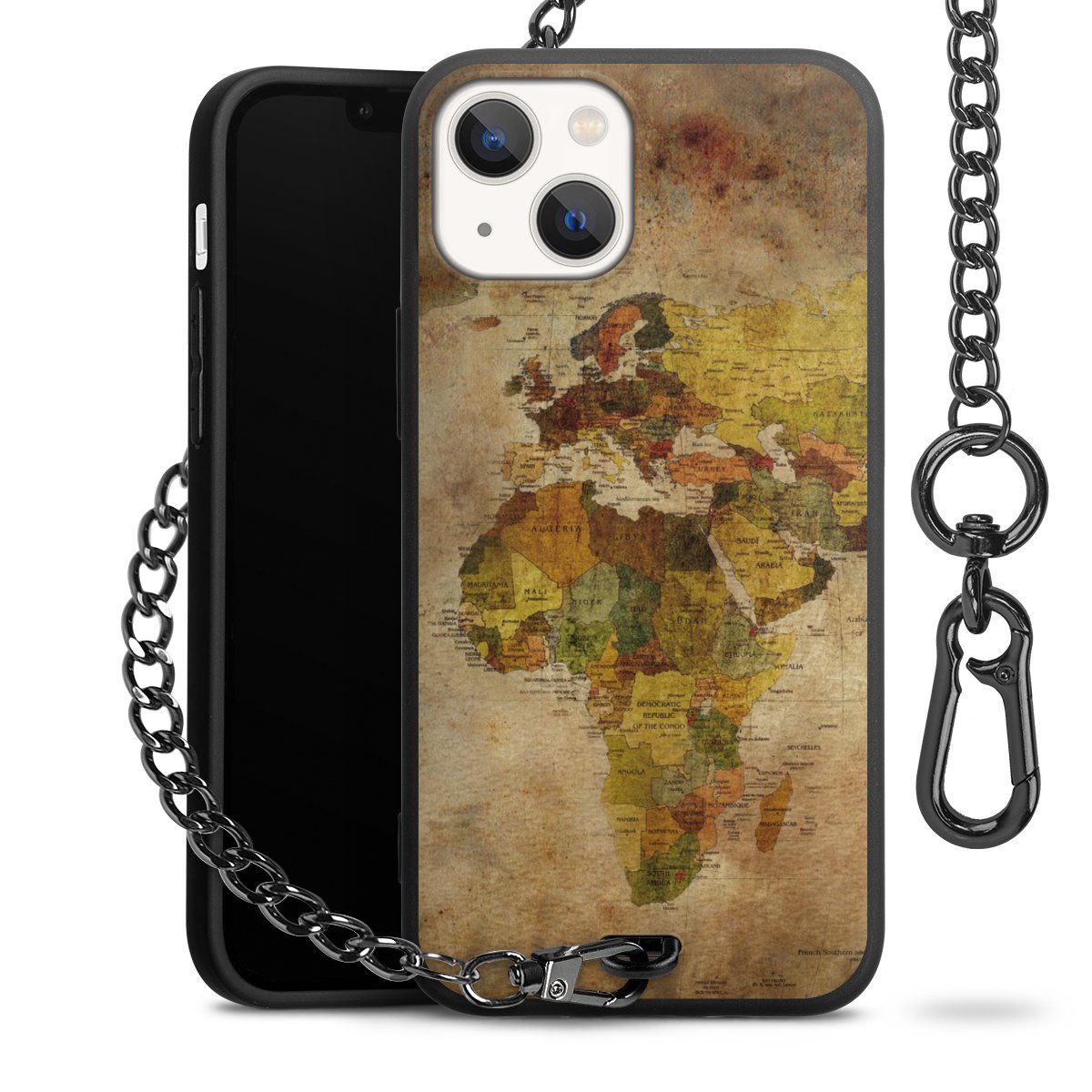 - Mattschwarze Handyhülle mit Metallkette