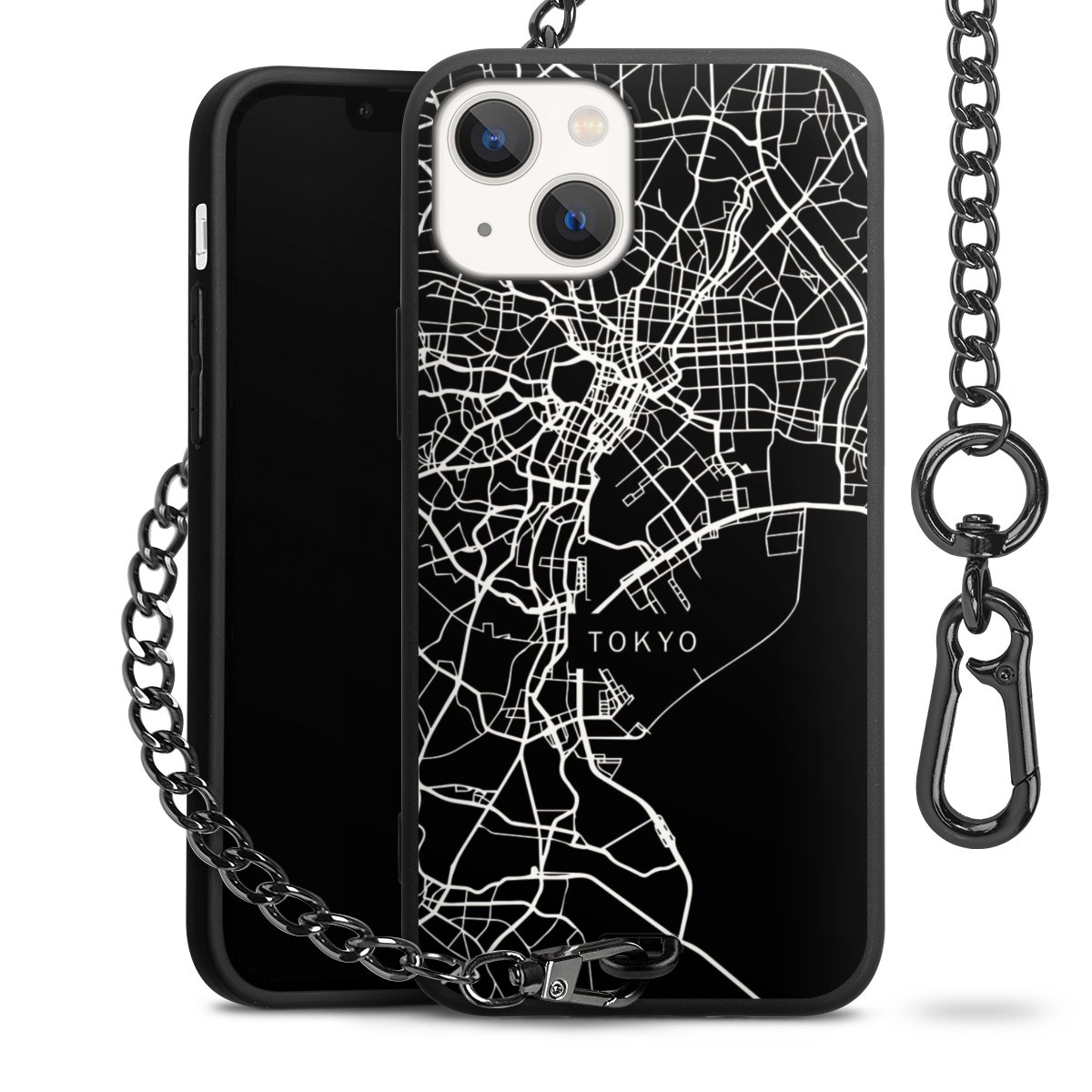 - Mattschwarze Handyhülle mit Metallkette
