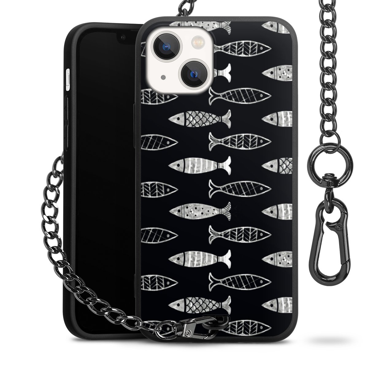 • Mattschwarze Handyhülle mit Metallkette