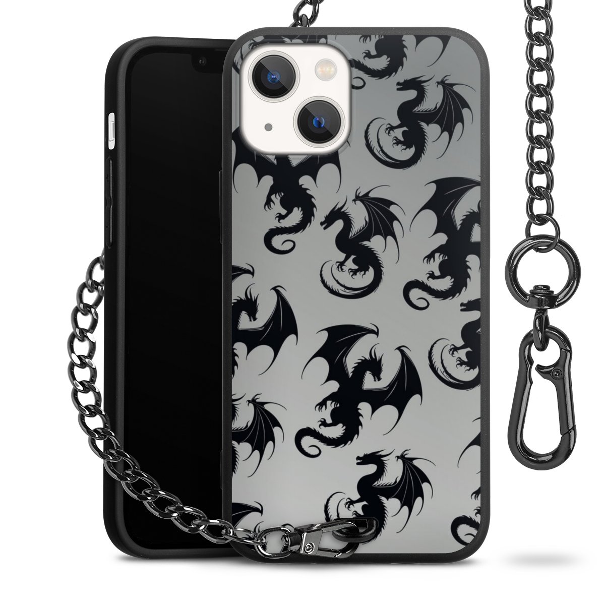 • Mattschwarze Handyhülle mit Metallkette