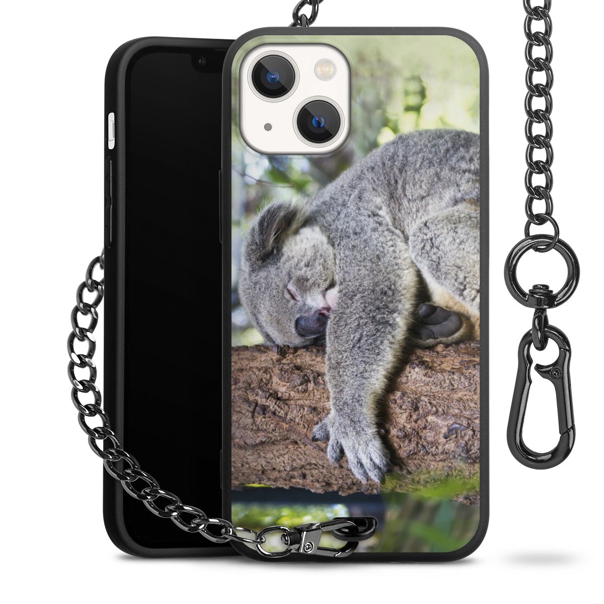 • Mattschwarze Handyhülle mit Metallkette