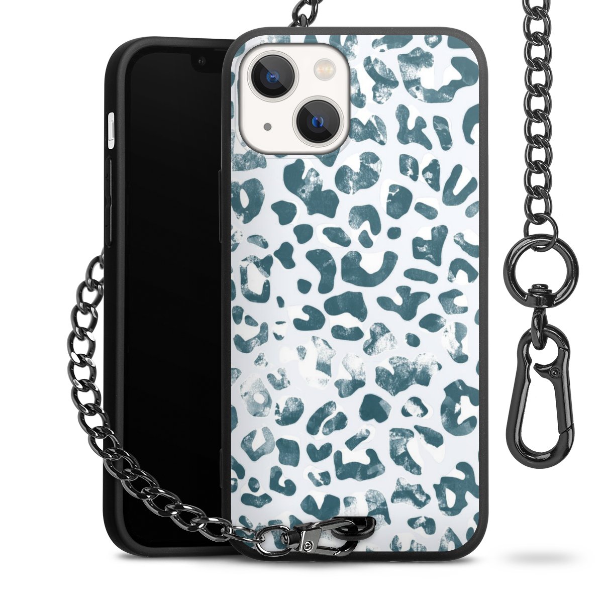 • Mattschwarze Handyhülle mit Metallkette