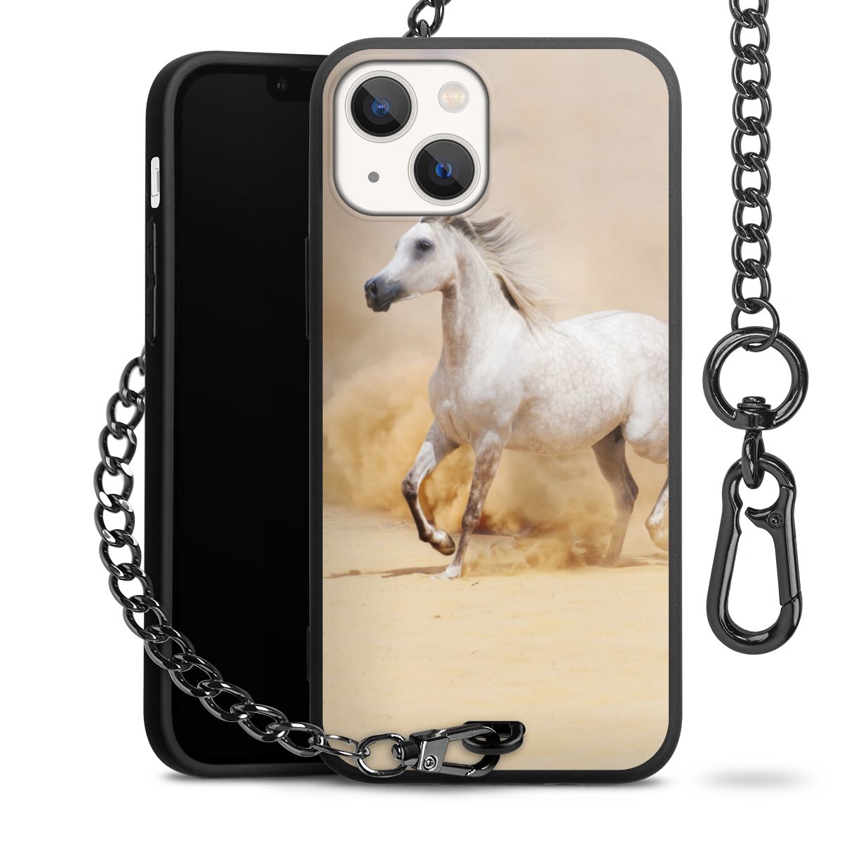 • Mattschwarze Handyhülle mit Metallkette