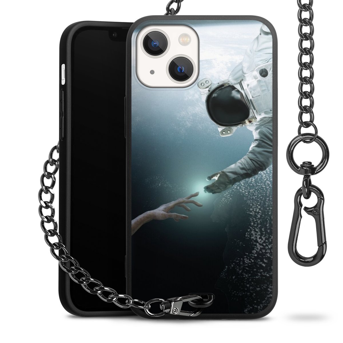 - Mattschwarze Handyhülle mit Metallkette