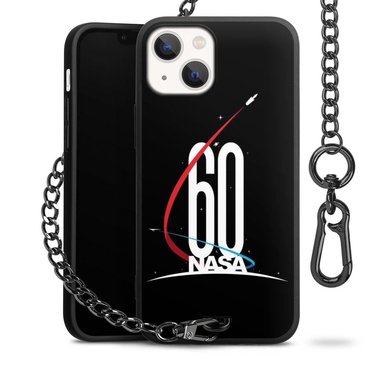 - Mattschwarze Handyhülle mit Metallkette