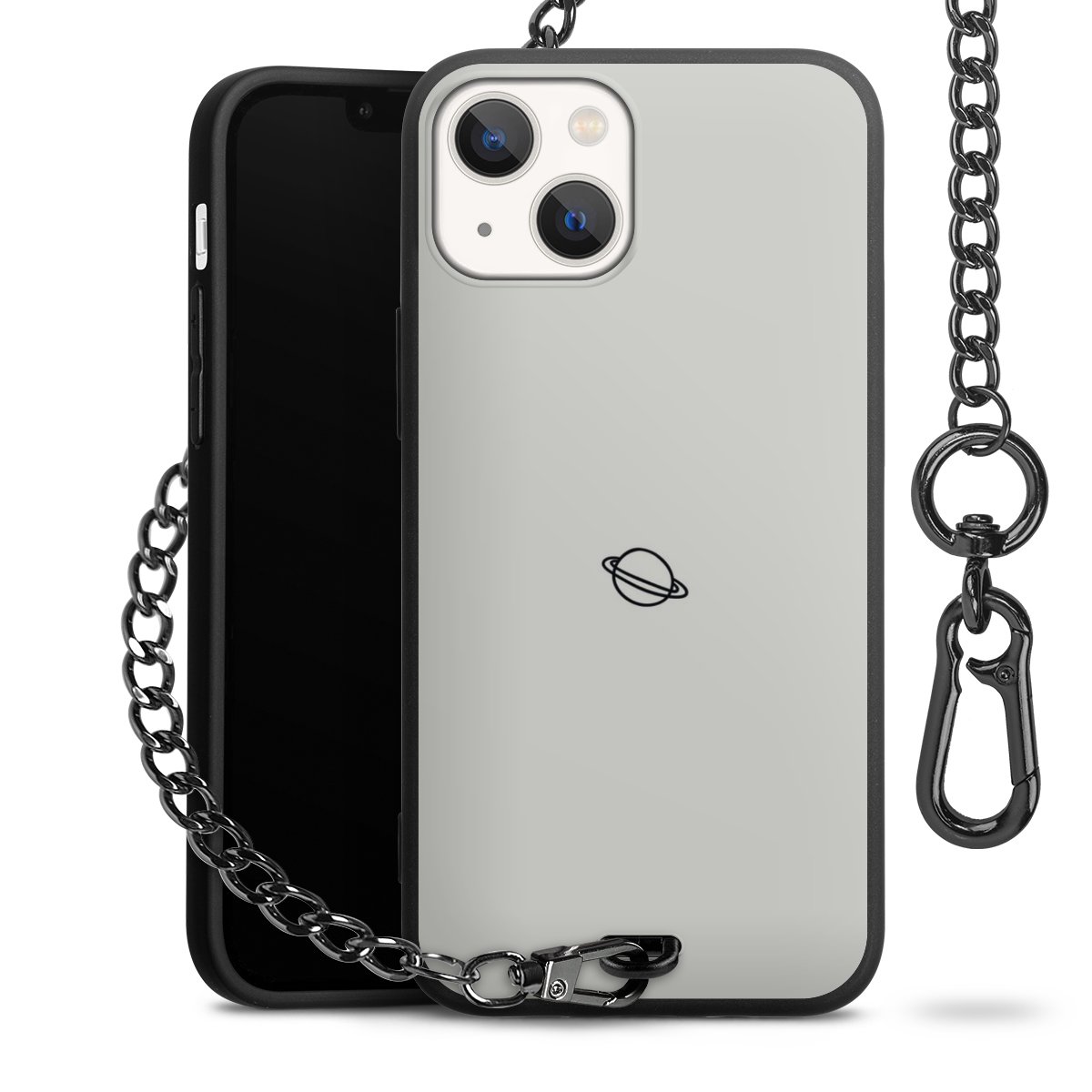 • Mattschwarze Handyhülle mit Metallkette