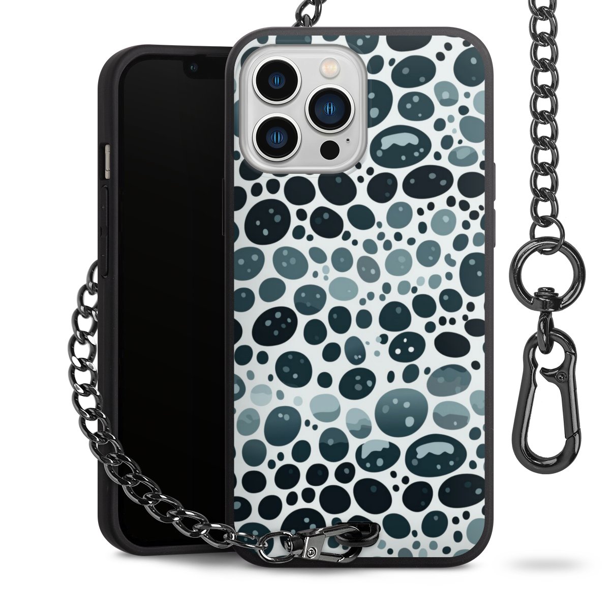 Die mattschwarze Silikon-Handyhülle besteht aus robustem TPU (thermoplastisches Polyurethan). Sie ist flexibel und schützt Dein Smartphone vor Stößen und Kratzern. Die Kette sowie der Karabinerhaken sind aus Metall in Gunmetal-Optik gefertigt. Für dieses Produkt kommen ausschließlich TÜV-geprüfte Materialien zum Einsatz.