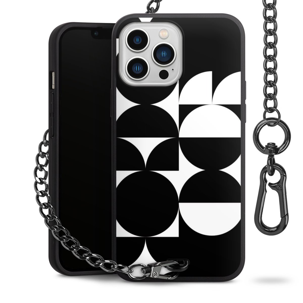 - Mattschwarze Handyhülle mit Metallkette