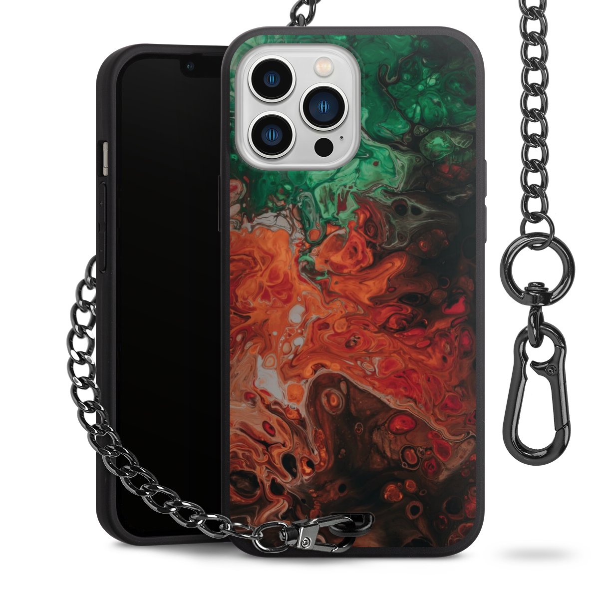 - Mattschwarze Handyhülle mit Metallkette