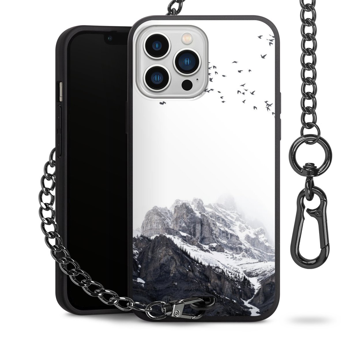 • Mattschwarze Handyhülle mit Metallkette