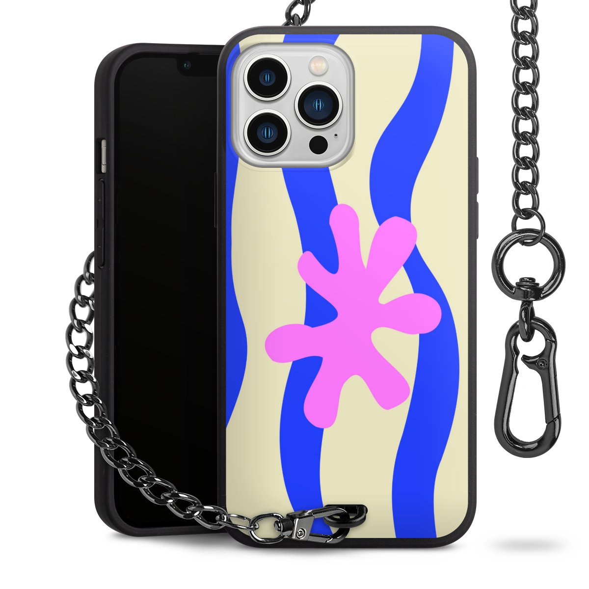 - Mattschwarze Handyhülle mit Metallkette