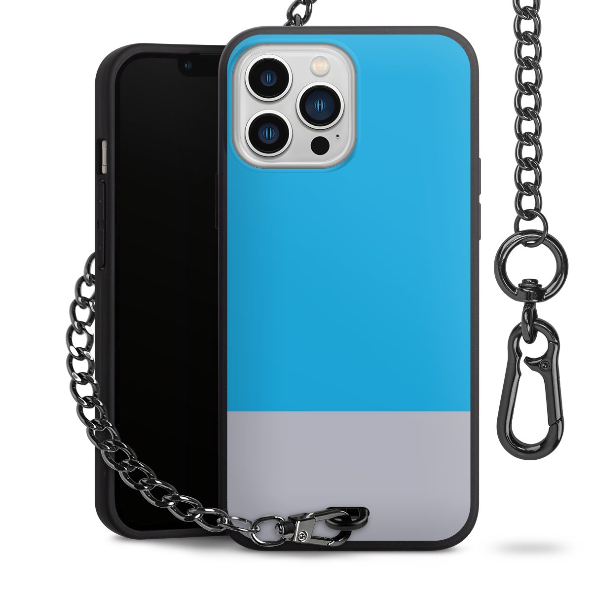 - Mattschwarze Handyhülle mit Metallkette