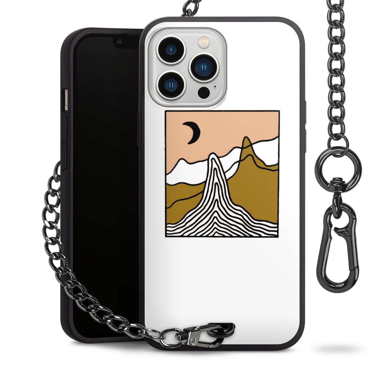- Mattschwarze Handyhülle mit Metallkette