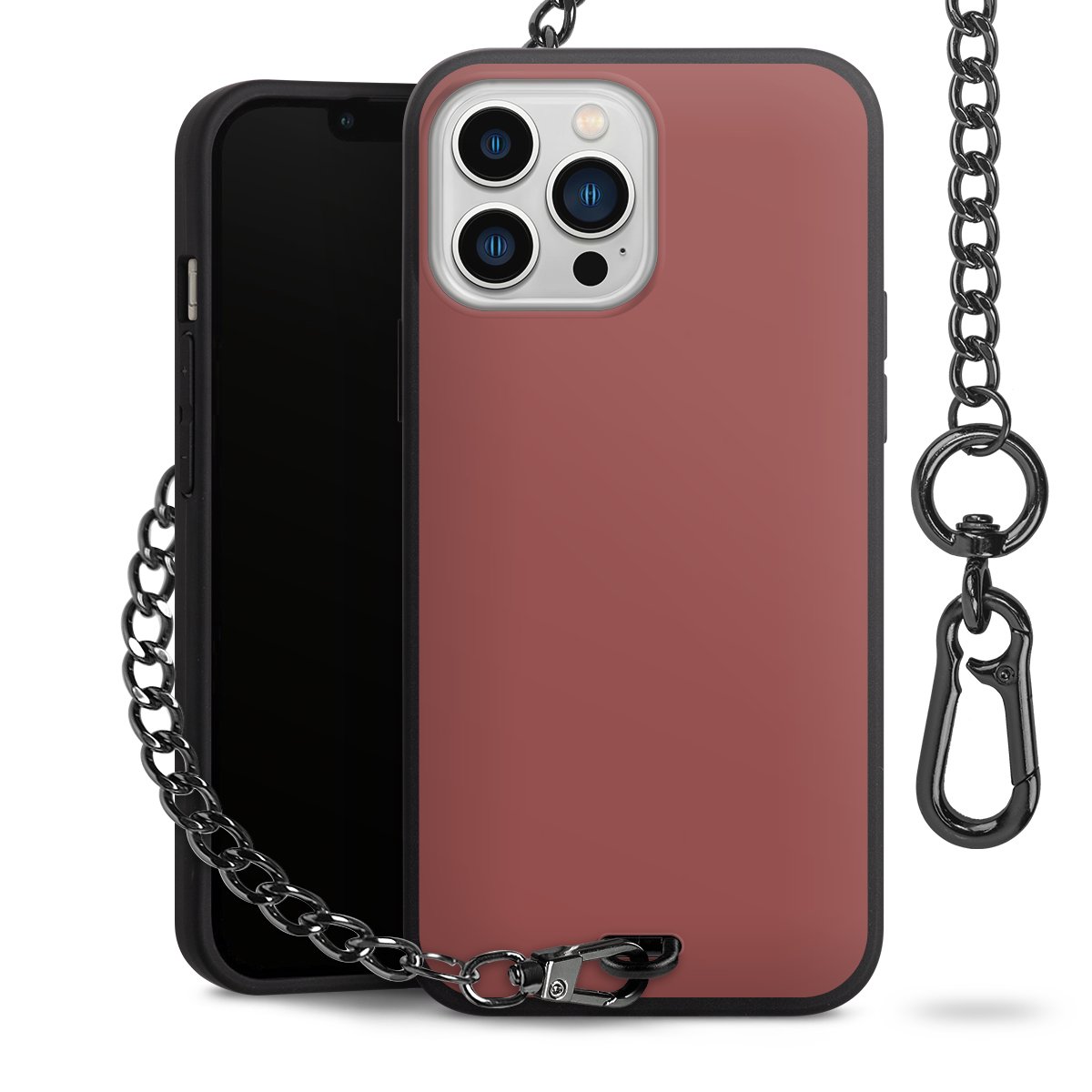 - Mattschwarze Handyhülle mit Metallkette