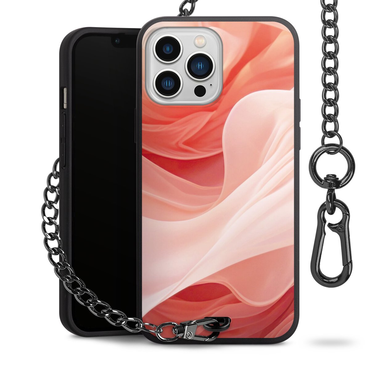 • Mattschwarze Handyhülle mit Metallkette