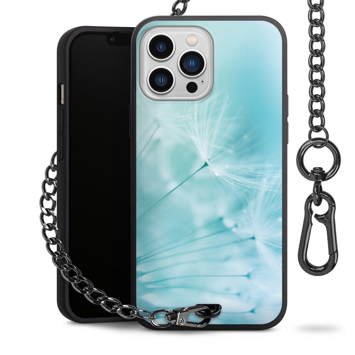 - Mattschwarze Handyhülle mit Metallkette