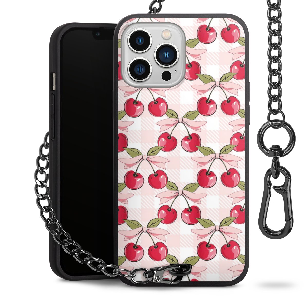 • Mattschwarze Handyhülle mit Metallkette