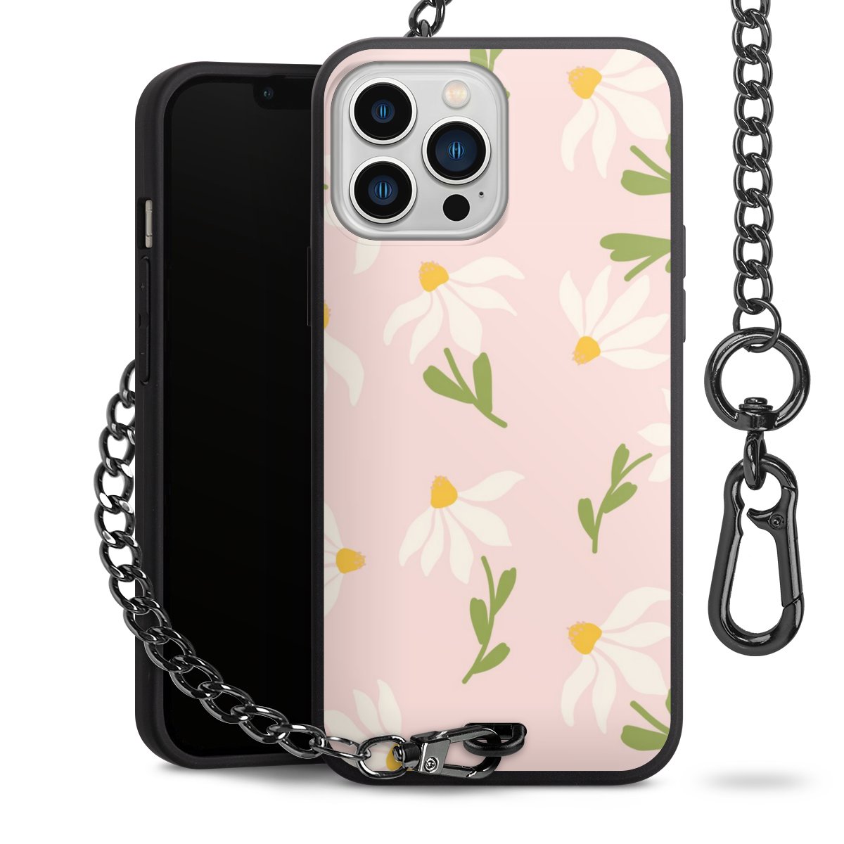 • Mattschwarze Handyhülle mit Metallkette