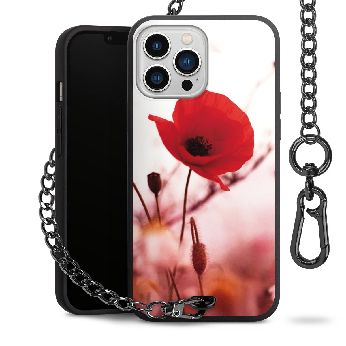 - Mattschwarze Handyhülle mit Metallkette