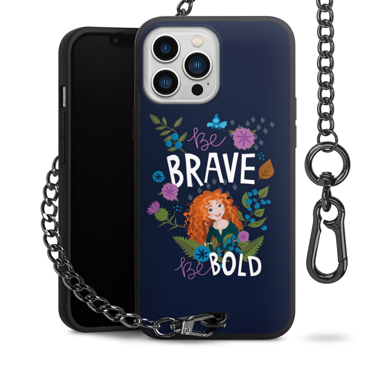 - Mattschwarze Handyhülle mit Metallkette