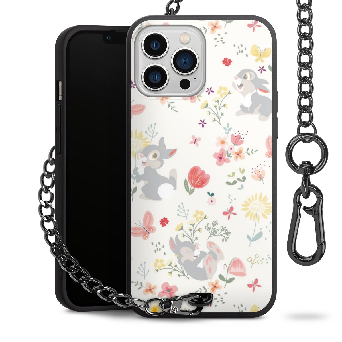 • Mattschwarze Handyhülle mit Metallkette