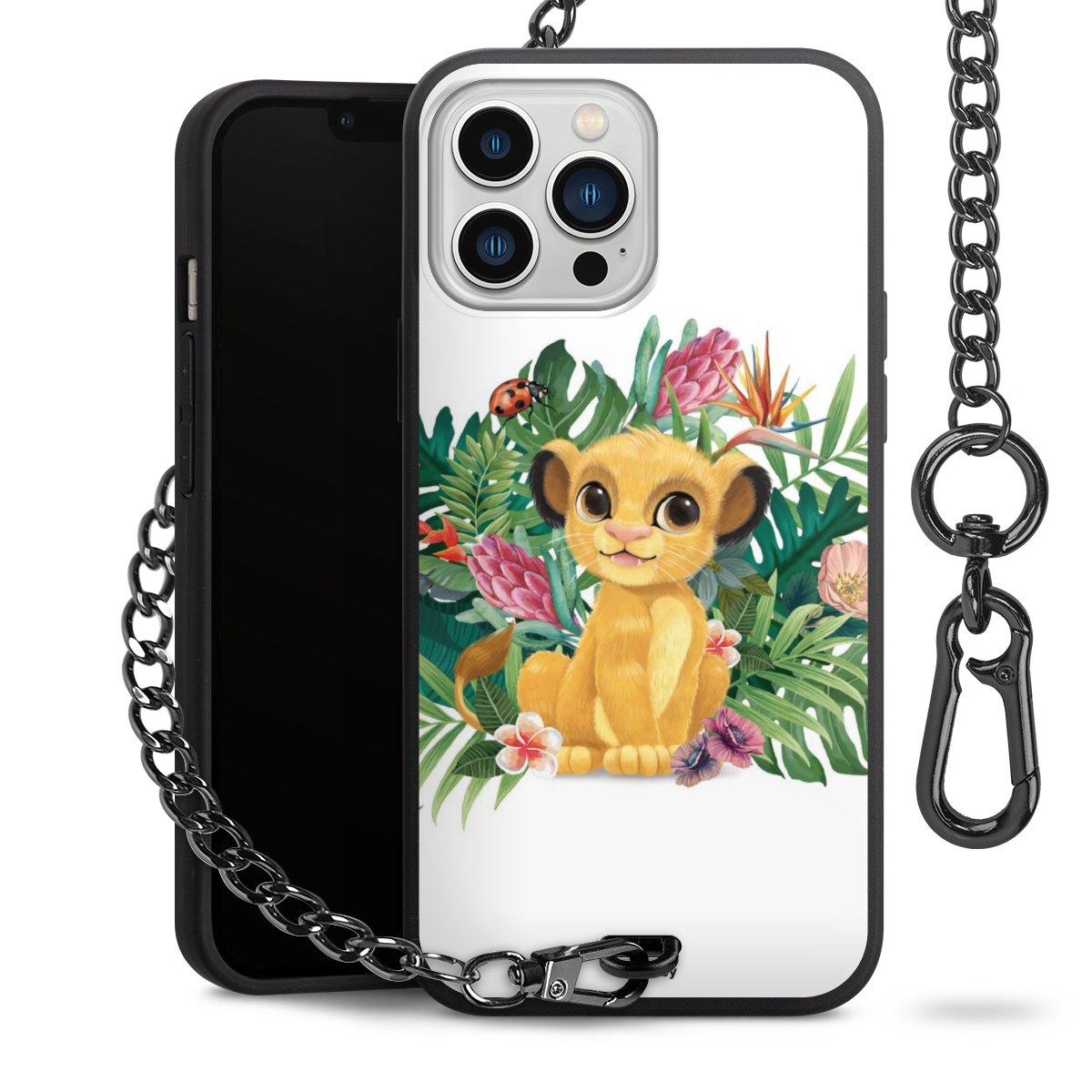 Die Handyhülle verfügt über eine mittig am unteren Rand platzierte Öse, an der die Metallkette stabil befestigt ist. Bestelle die Hülle einfach für Dein Smartphone-Modell, dann passt sie wie angegossen und Du brauchst sie bloß einmal anzudrücken. Handy in die Tasche, Karabiner an den Hosenbund – schon kann die Party starten.