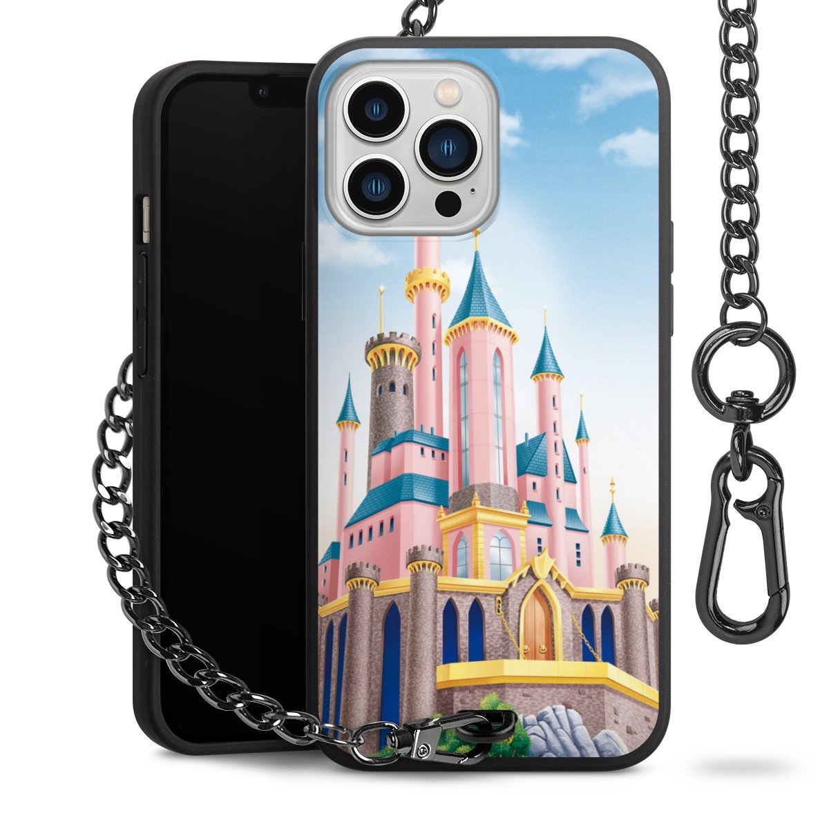 • Mattschwarze Handyhülle mit Metallkette