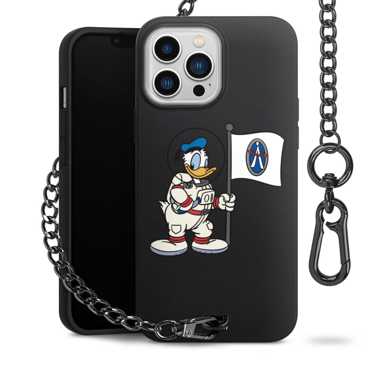 • Mattschwarze Handyhülle mit Metallkette