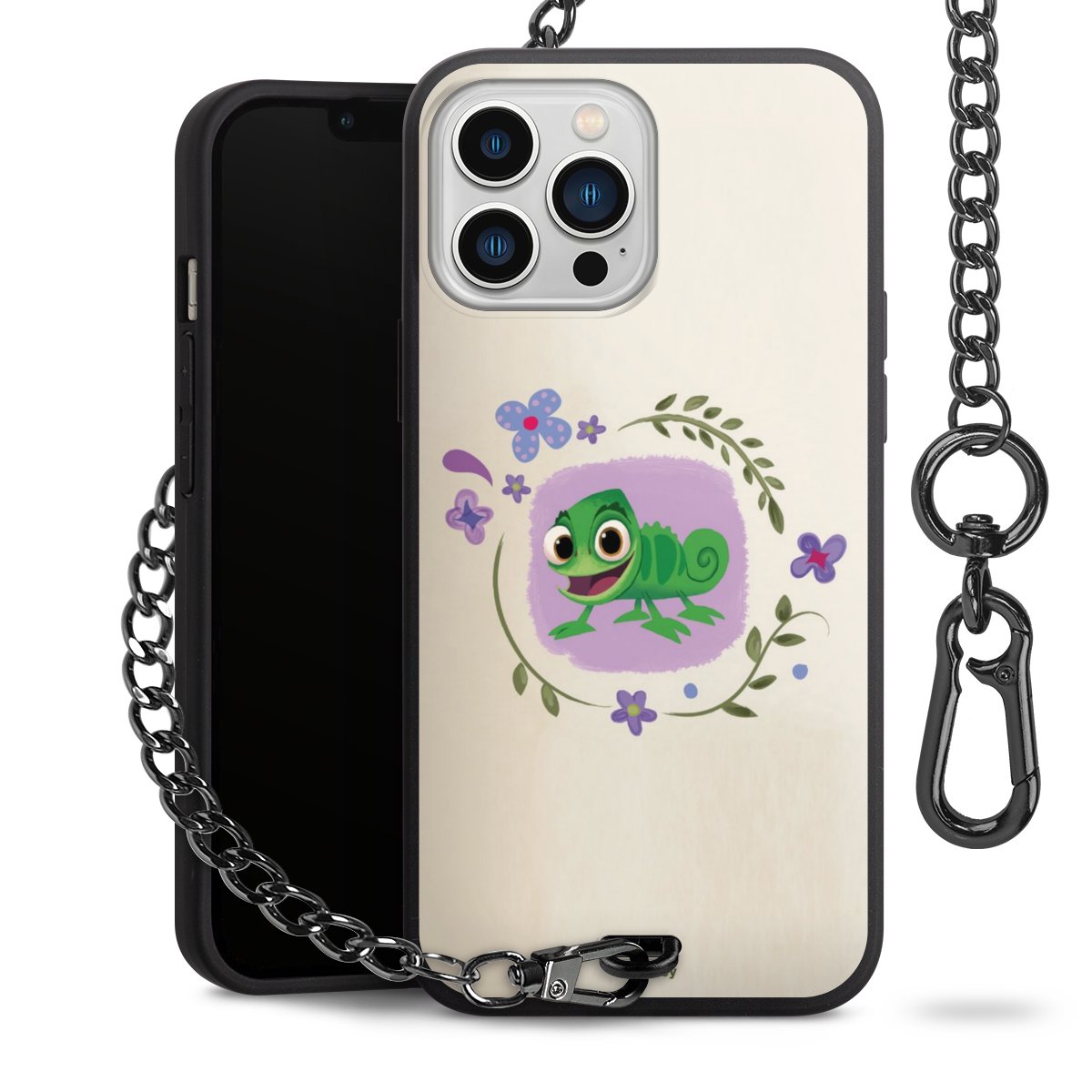 Die mattschwarze Silikon-Handyhülle besteht aus robustem TPU (thermoplastisches Polyurethan). Sie ist flexibel und schützt Dein Smartphone vor Stößen und Kratzern. Die Kette sowie der Karabinerhaken sind aus Metall in Gunmetal-Optik gefertigt. Für dieses Produkt kommen ausschließlich TÜV-geprüfte Materialien zum Einsatz.