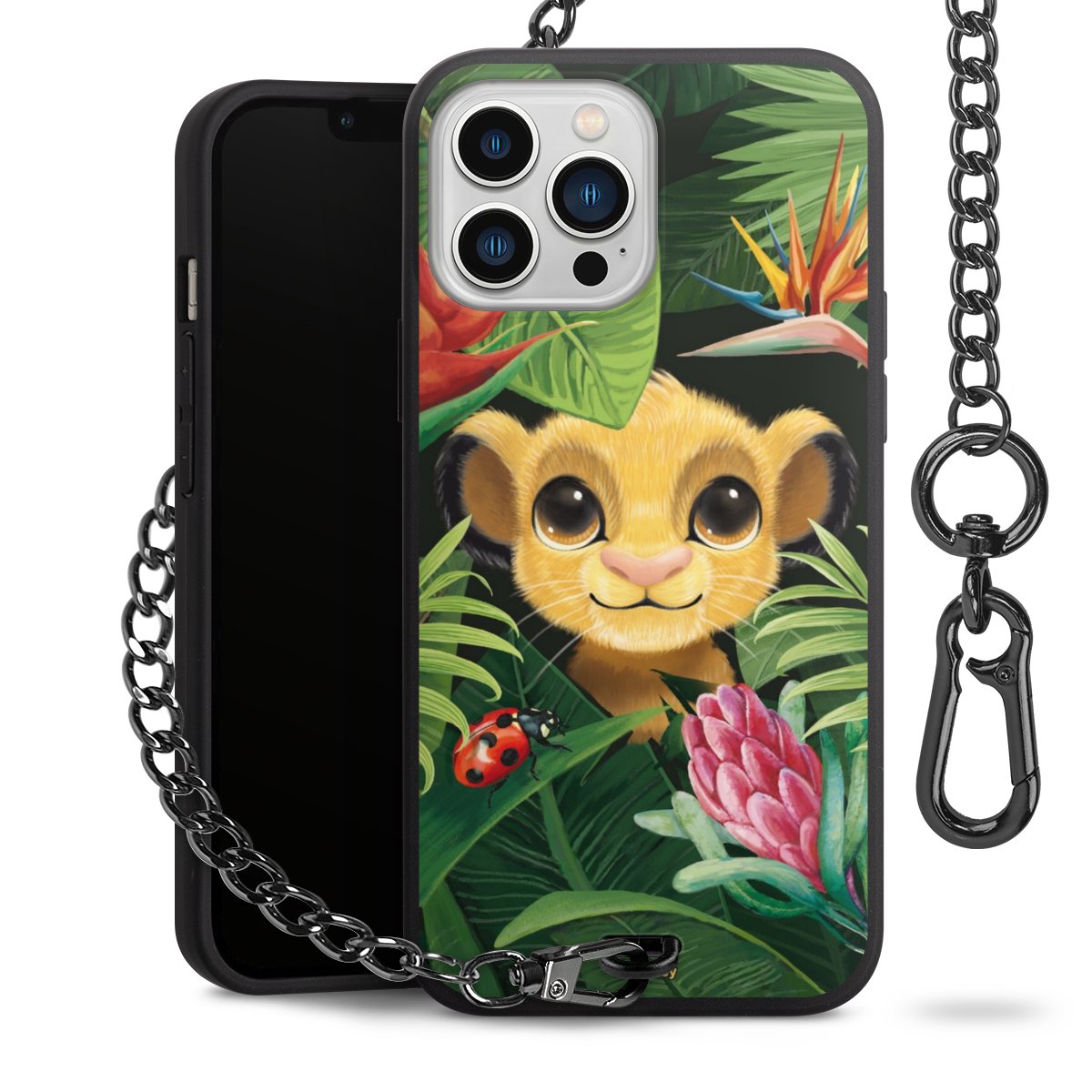 • Mattschwarze Handyhülle mit Metallkette