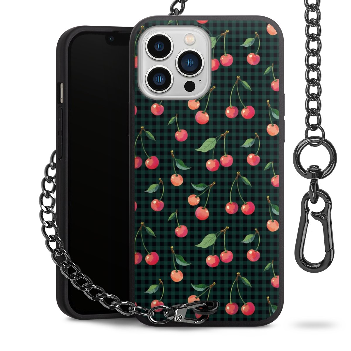 • Mattschwarze Handyhülle mit Metallkette