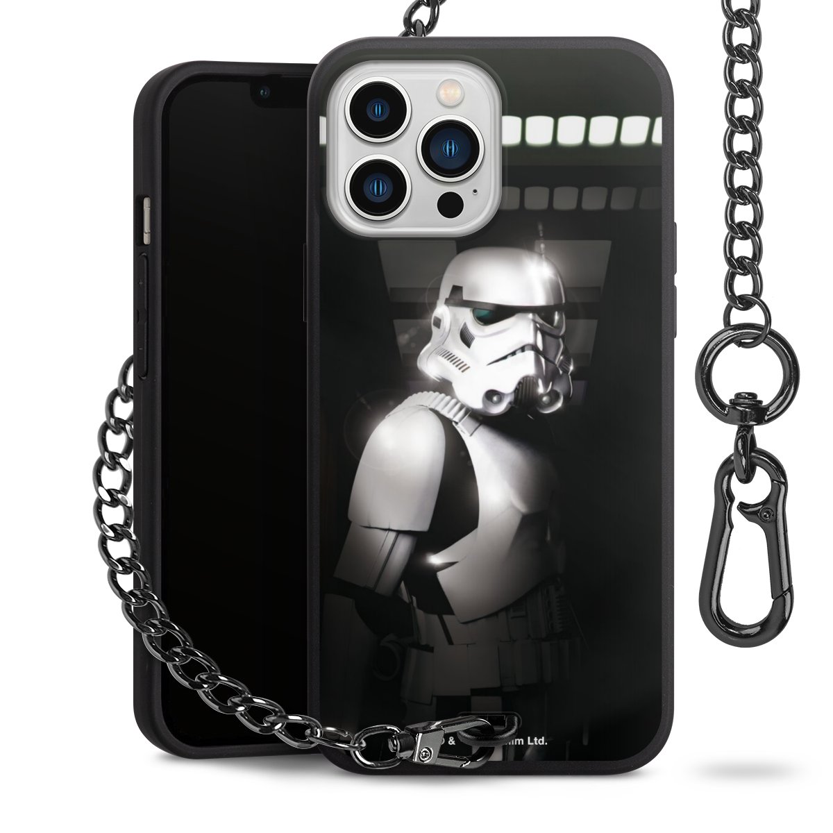 Die mattschwarze Silikon-Handyhülle besteht aus robustem TPU (thermoplastisches Polyurethan). Sie ist flexibel und schützt Dein Smartphone vor Stößen und Kratzern. Die Kette sowie der Karabinerhaken sind aus Metall in Gunmetal-Optik gefertigt. Für dieses Produkt kommen ausschließlich TÜV-geprüfte Materialien zum Einsatz.