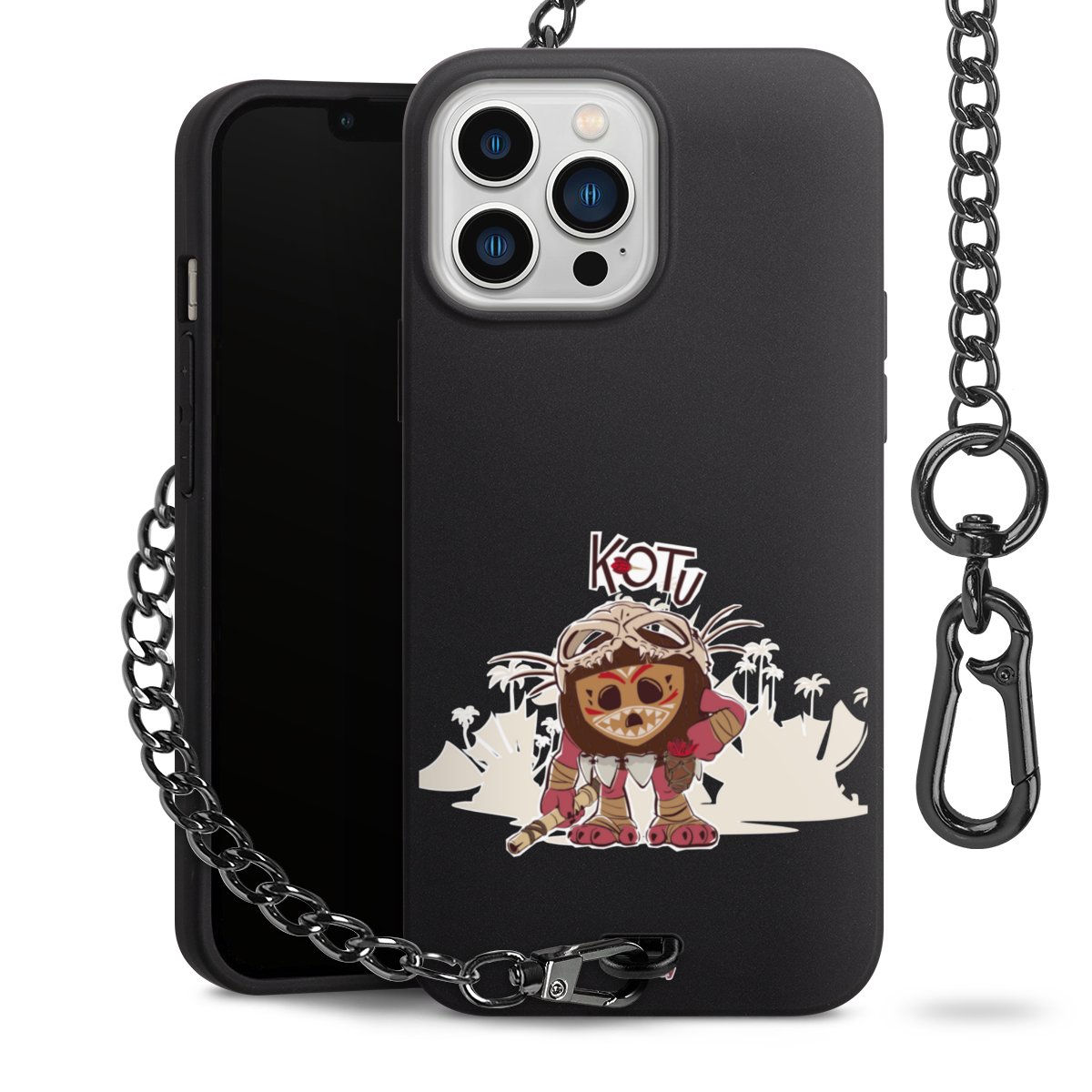 • Mattschwarze Handyhülle mit Metallkette