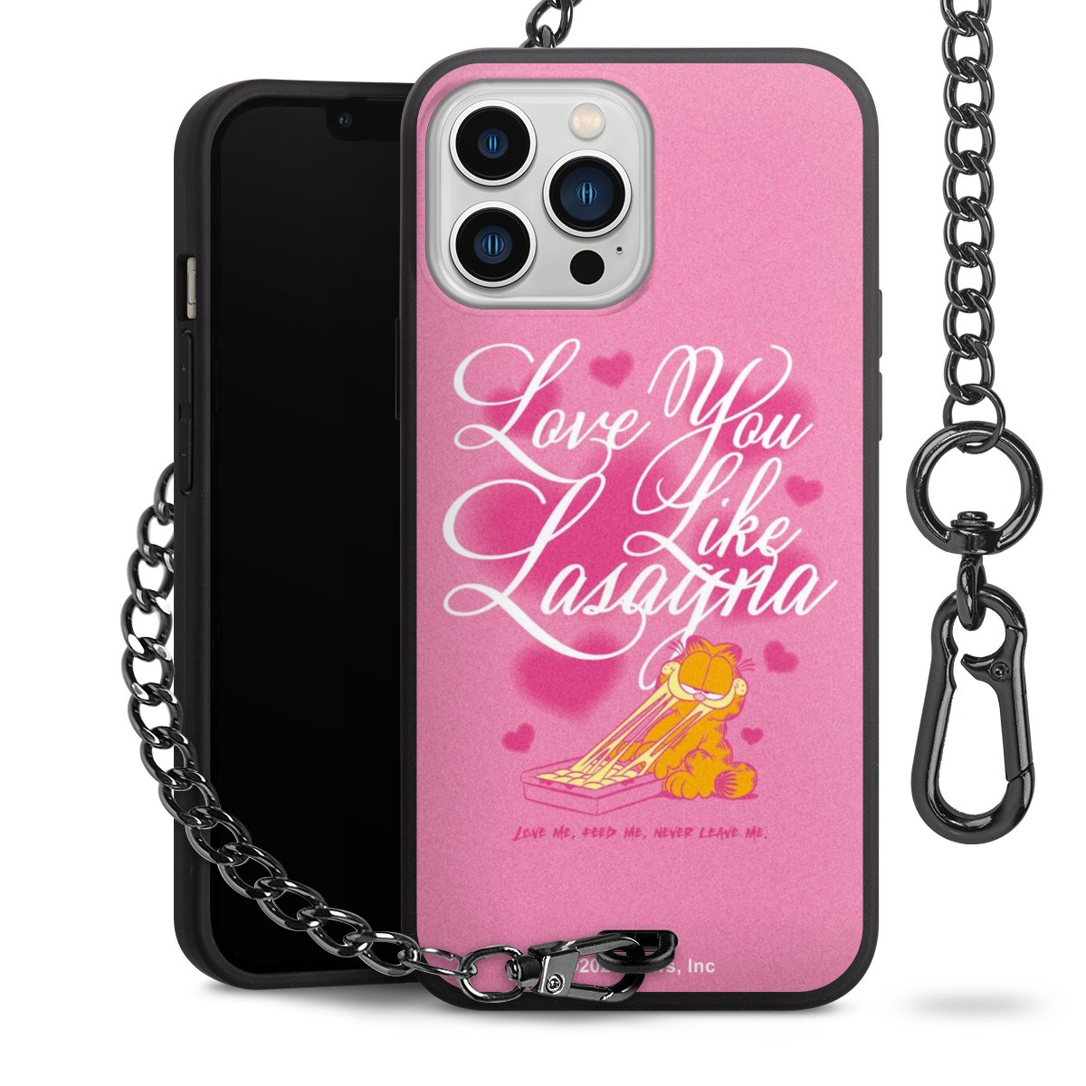 • Mattschwarze Handyhülle mit Metallkette