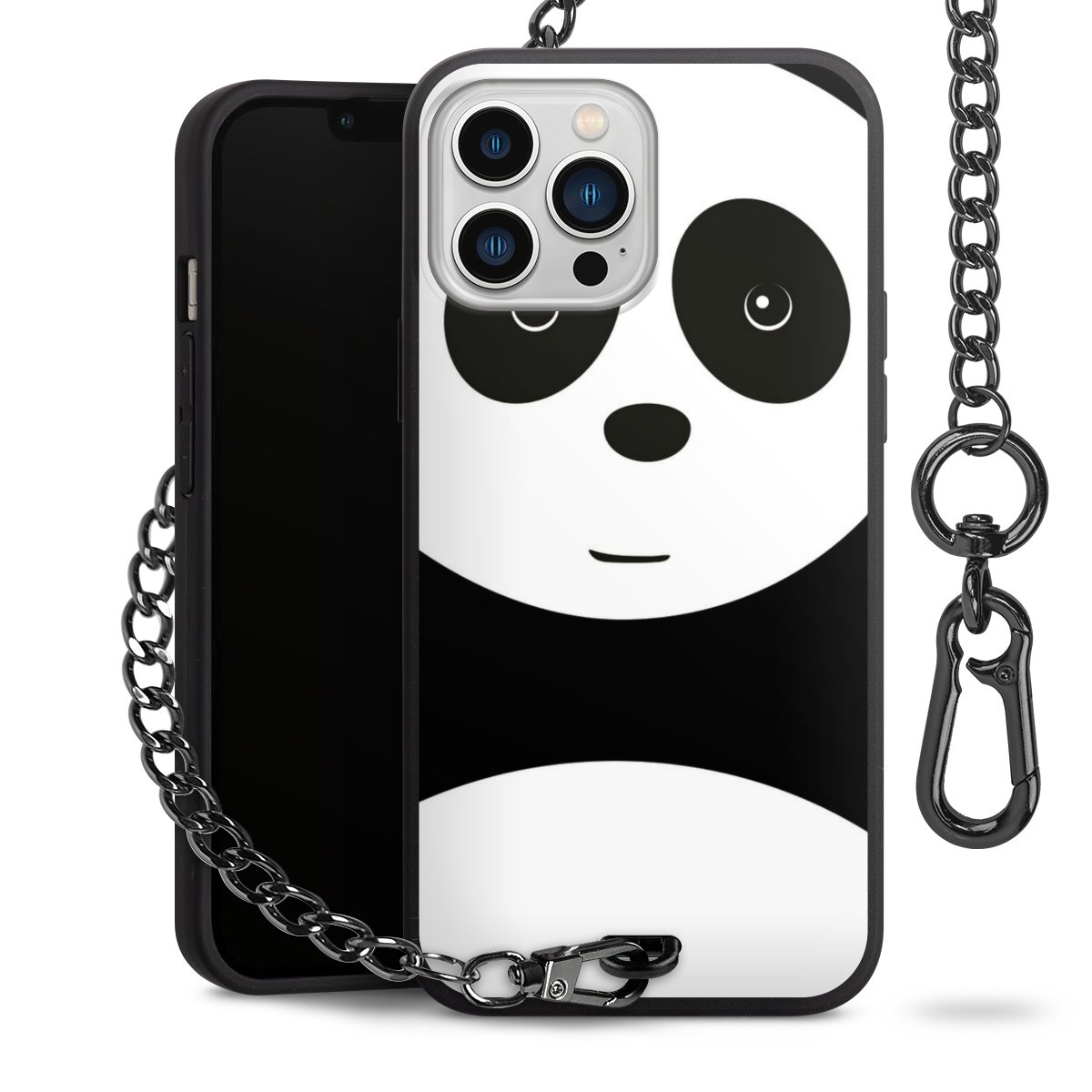 • Mattschwarze Handyhülle mit Metallkette