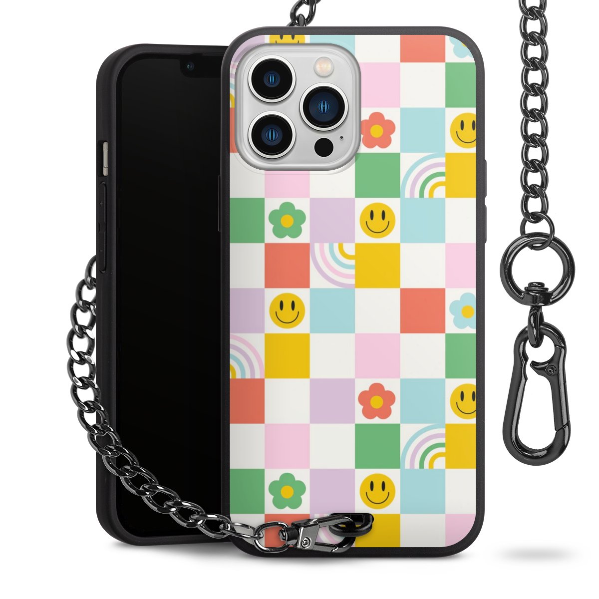 Die mattschwarze Silikon-Handyhülle besteht aus robustem TPU (thermoplastisches Polyurethan). Sie ist flexibel und schützt Dein Smartphone vor Stößen und Kratzern. Die Kette sowie der Karabinerhaken sind aus Metall in Gunmetal-Optik gefertigt. Für dieses Produkt kommen ausschließlich TÜV-geprüfte Materialien zum Einsatz.