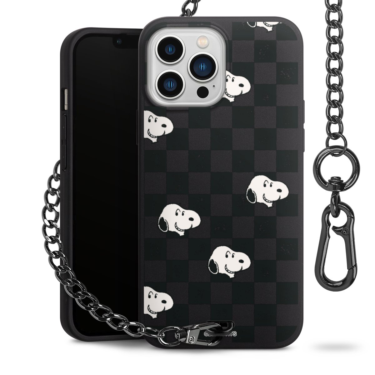 Die mattschwarze Silikon-Handyhülle besteht aus robustem TPU (thermoplastisches Polyurethan). Sie ist flexibel und schützt Dein Smartphone vor Stößen und Kratzern. Die Kette sowie der Karabinerhaken sind aus Metall in Gunmetal-Optik gefertigt. Für dieses Produkt kommen ausschließlich TÜV-geprüfte Materialien zum Einsatz.