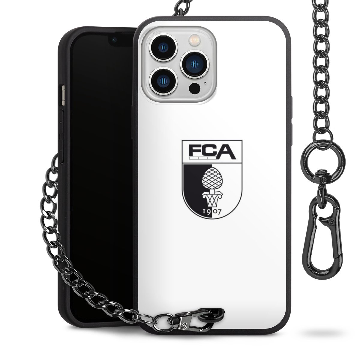 Die mattschwarze Silikon-Handyhülle besteht aus robustem TPU (thermoplastisches Polyurethan). Sie ist flexibel und schützt Dein Smartphone vor Stößen und Kratzern. Die Kette sowie der Karabinerhaken sind aus Metall in Gunmetal-Optik gefertigt. Für dieses Produkt kommen ausschließlich TÜV-geprüfte Materialien zum Einsatz.
