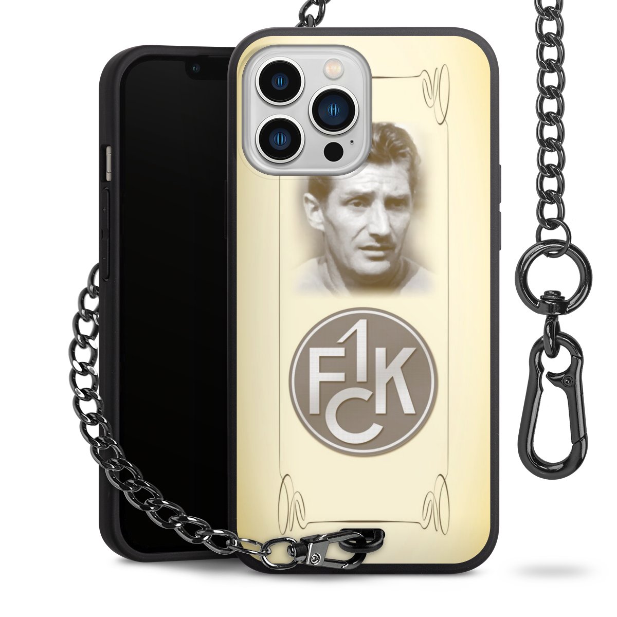 Die Handyhülle verfügt über eine mittig am unteren Rand platzierte Öse, an der die Metallkette stabil befestigt ist. Bestelle die Hülle einfach für Dein Smartphone-Modell, dann passt sie wie angegossen und Du brauchst sie bloß einmal anzudrücken. Handy in die Tasche, Karabiner an den Hosenbund – schon kann die Party starten.