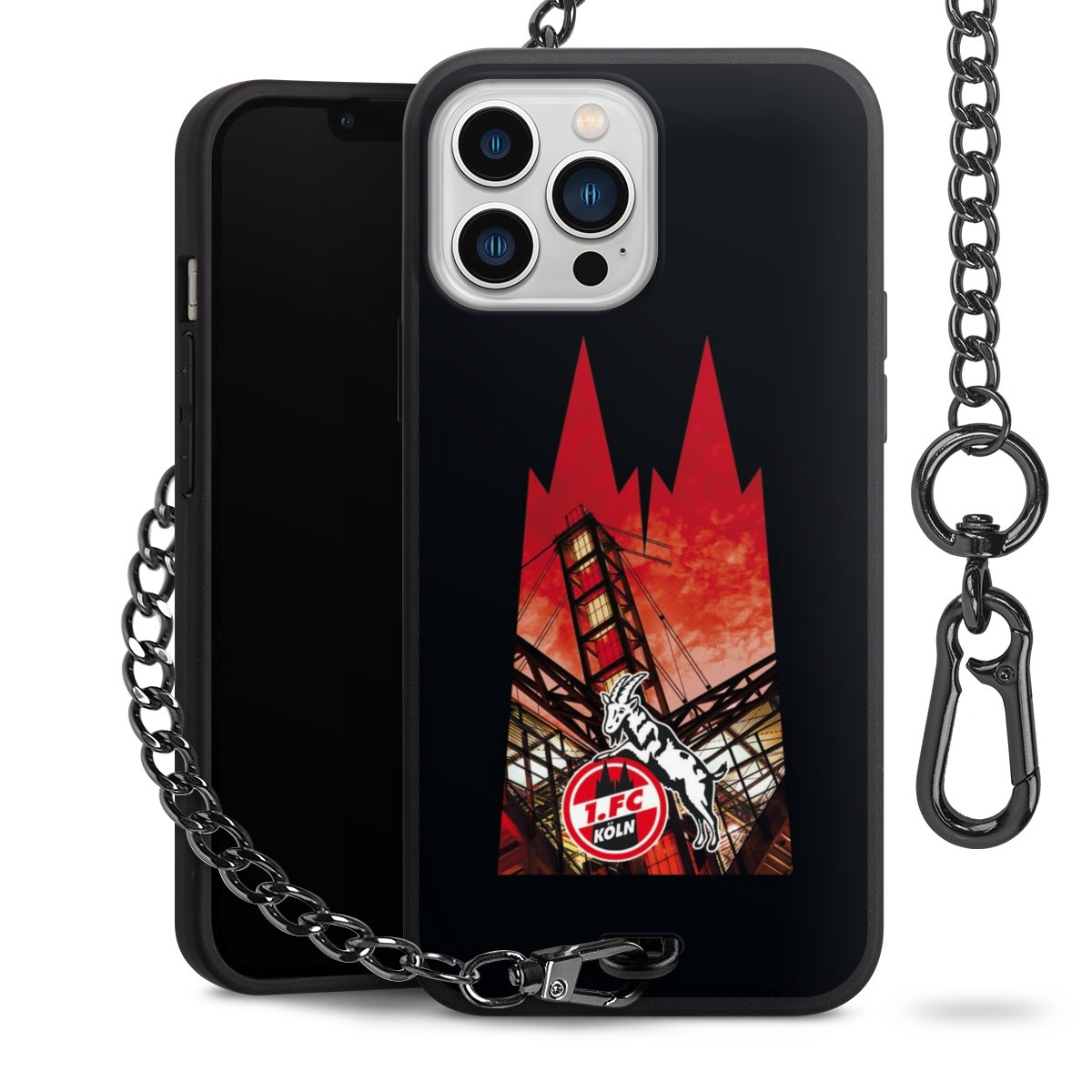 - Mattschwarze Handyhülle mit Metallkette