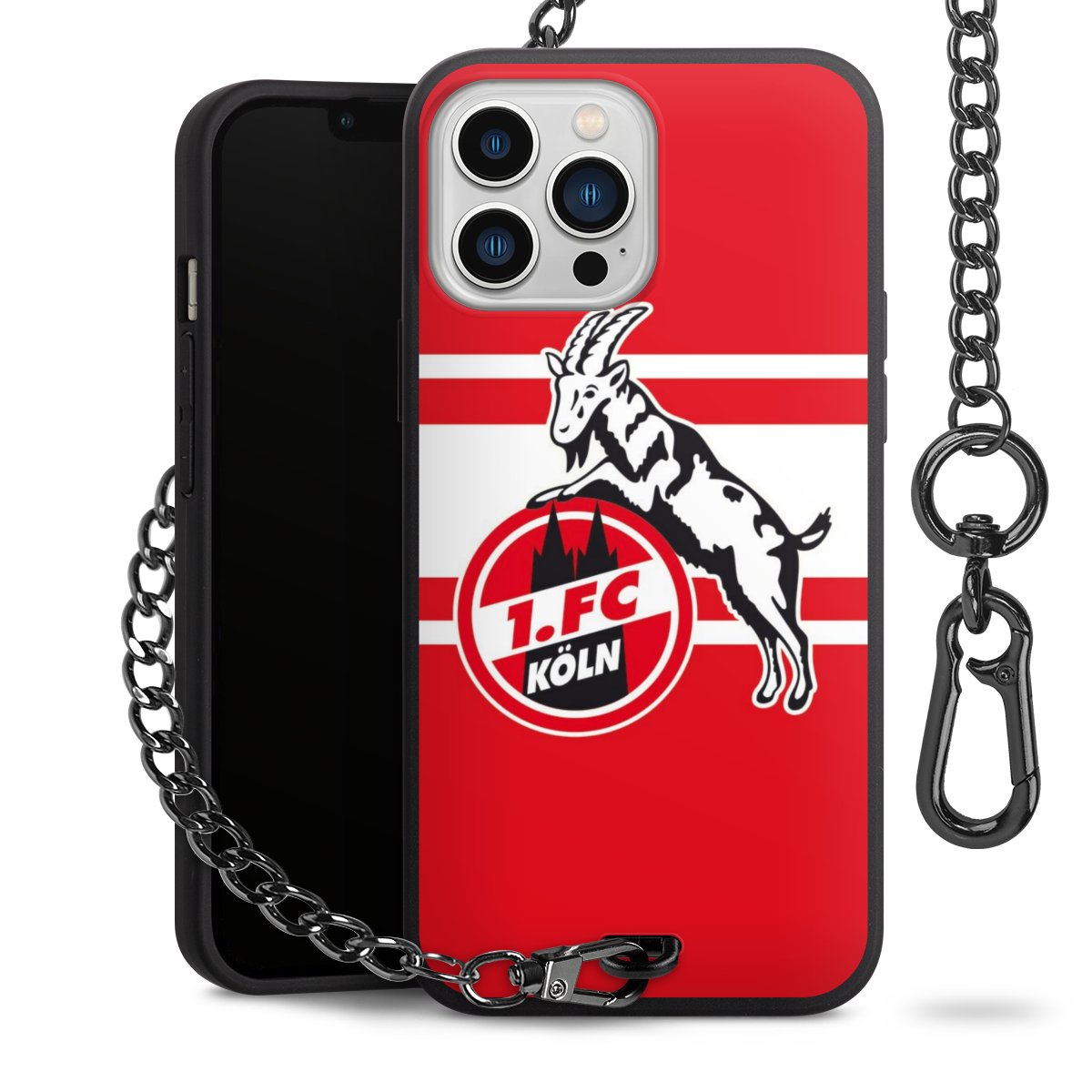 Die Handyhülle verfügt über eine mittig am unteren Rand platzierte Öse, an der die Metallkette stabil befestigt ist. Bestelle die Hülle einfach für Dein Smartphone-Modell, dann passt sie wie angegossen und Du brauchst sie bloß einmal anzudrücken. Handy in die Tasche, Karabiner an den Hosenbund – schon kann die Party starten.