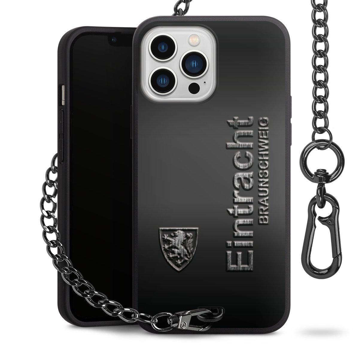 • Mattschwarze Handyhülle mit Metallkette